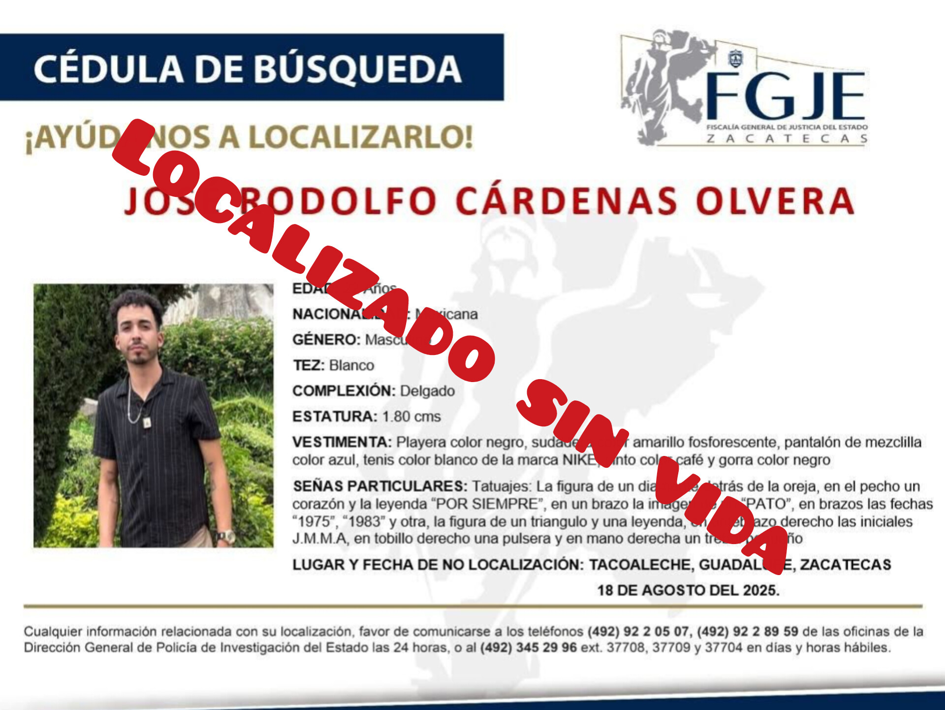 Muerte o silencio, la típica respuesta institucional. – Zacatecas parece resignado a la dinámica absurda que le ha marcado la actual administración. Ante la desaparición de un miembro de la comunidad, la población toma vialidades y ejerce una presión. El gobierno le entrega, indiscriminadamente, una respuesta tenebrosa:  cadáveres o silencio. El lunes, pese a la lluvia, pobladores de El bordo ralentizaron con tractores la arteria principal de la ciudad capital por la desaparición de José Rodolfo Cárdenas de 22 años. No pasaron más de 24 horas para que la familia recibiera una terrible noticia por parte de la Fiscalía: el fatal desenlace del agricultor. Según el comunicado del organismo que encabeza Cristian Paul Camacho Osnaya,  se recibió una notificación del gobierno de San Luis Potosí, en el marco de la búsqueda del joven. En ella, daban cuenta del hallazgo de un cuerpo en Los Hernández, Villa de Ramos, con las características de José Rodolfo, desaparecido el 18 de agosto en el trayecto de Tacoaleche a Guadalupe, área en la que se registró su última comunicación.